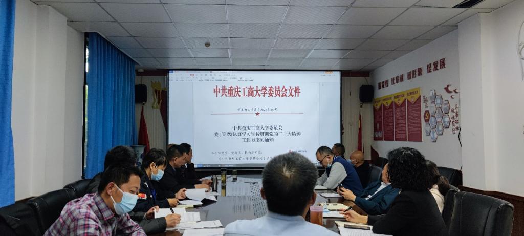 根据会议议程,钱忠坤同志首先传达学习了《中共重庆工商大学委员会关于印发认真学习宣传贯彻党的二十大精神工作方案的通知》(重工商大委发〔2022〕85号),接着以“深入学习贯彻党的二十大精神,全力维护学校安全稳定”为题为全体党员、干部讲授专题党课。