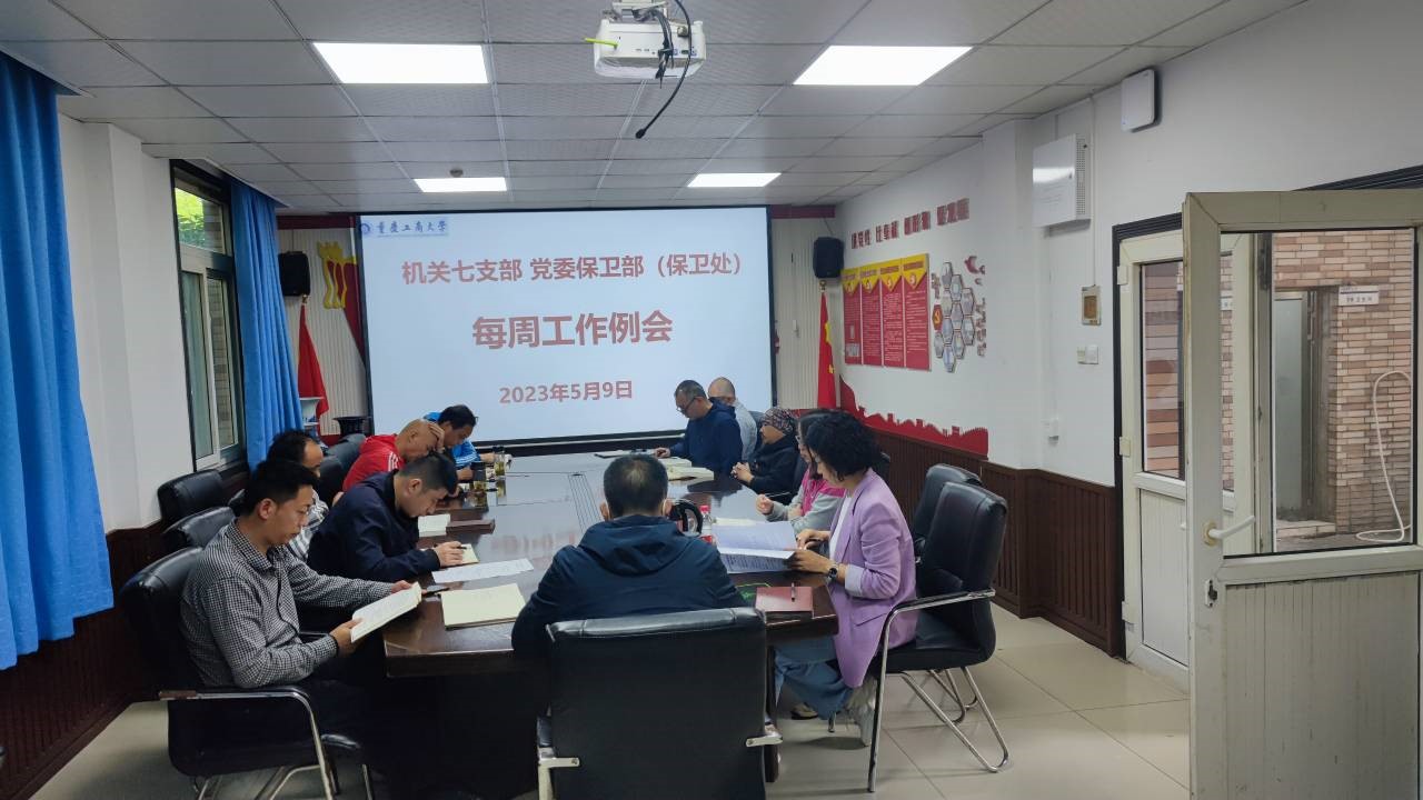 5月9日上午,机关七支部、党委保卫部(保卫处)在支部党员活动室召开了每周工作例会,支部党员、保卫干部、安保大队队长和副队长参加了会议,支部书记、党委保卫部部长(保卫处处长)钱忠坤同志主持会议。