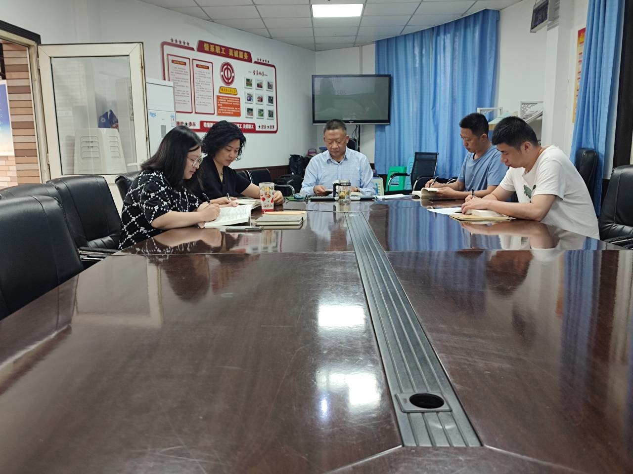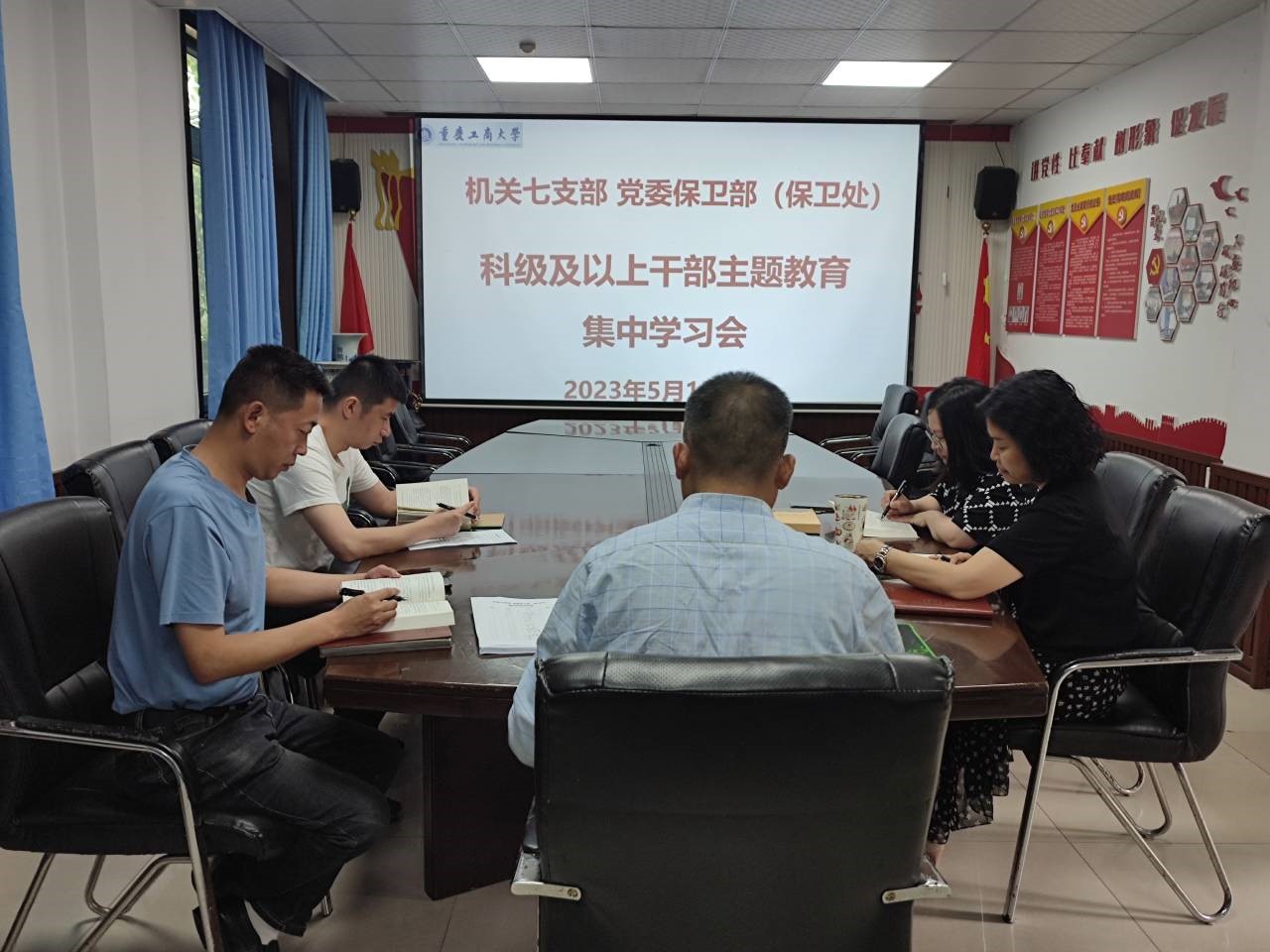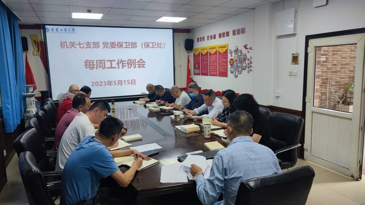 5月15日上午,机关七支部、党委保卫部(保卫处)在支部党员活动室召开了每周工作例会,并开展学习贯彻习近平新时代中国特色社会主义思想主题教育集中学习。支部党员、保卫干部、安保大队队长和副队长参加了会议,支部书记、党委保卫部部长(保卫处处长)钱忠坤同志主持会议。