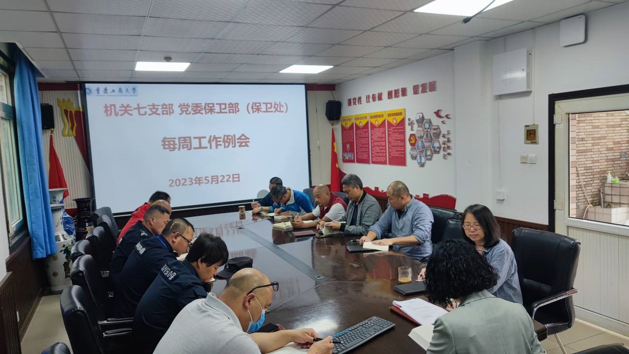 5月22日下午,机关七支部、党委保卫部(保卫处)在支部党员活动室召开了每周工作例会。支部党员、保卫干部、安保大队队长和副队长参加了会议,会议由支委委员、党委保卫部副部长(保卫处副处长)曹晓丽同志主持。