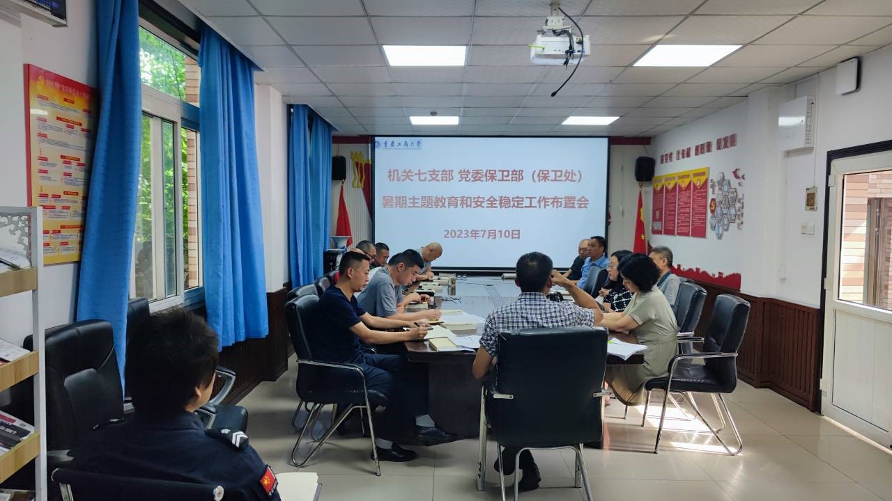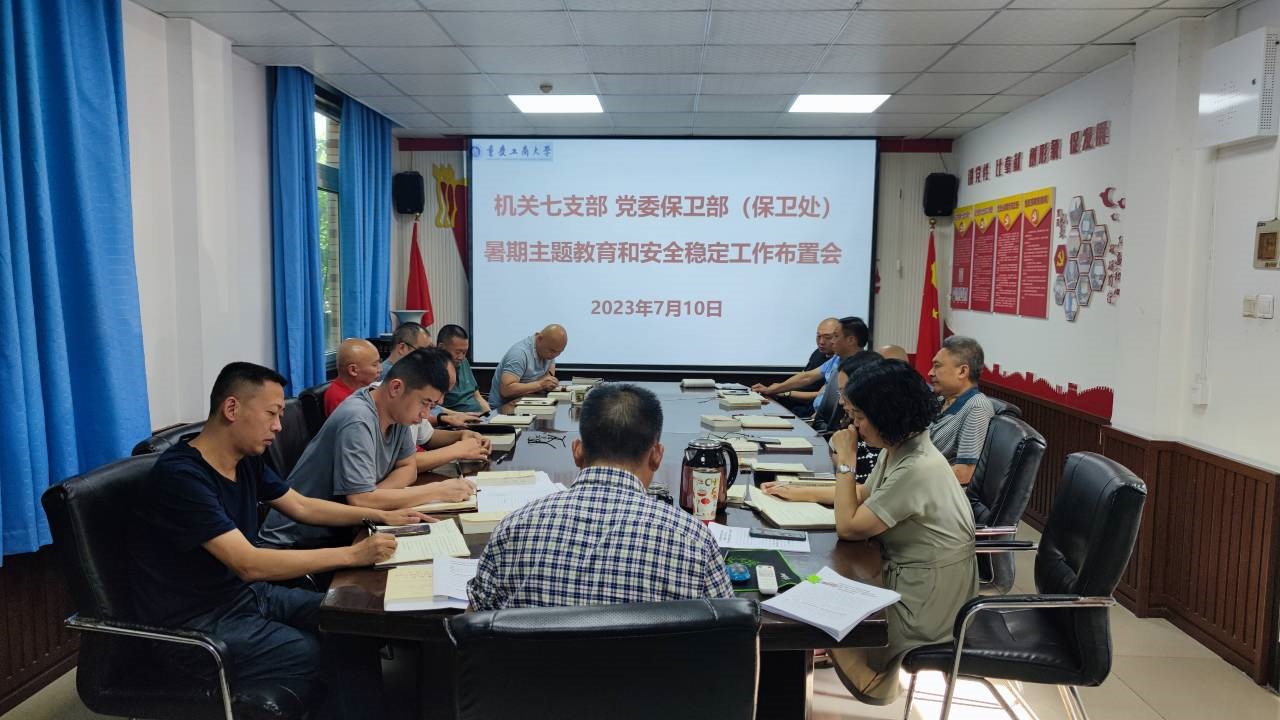 7月10日,机关七支部、党委保卫部(保卫处)在支部党员活动室召开了暑期主题教育和安全稳定工作布置会。支部党员、保卫干部、安保大队队长和副队长参加了会议,会议由支部书记、党委保卫部部长(保卫处处长)钱忠坤同志主持。
