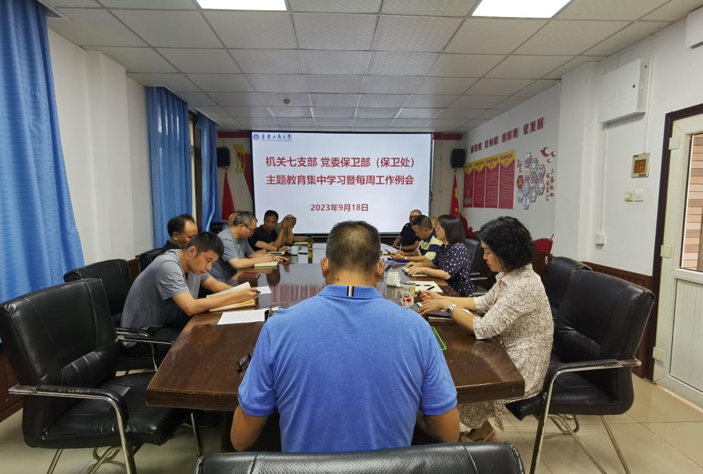 9月18日上午9:00,机关七支部、党委保卫部(保卫处)在支部党员活动室召开了主题教育集中学习会暨每周工作例会。支部党员、保卫干部、安保大队队长和副队长参加了会议,会议由支部书记、党委保卫部部长(保卫处处长)钱忠坤同志主持。