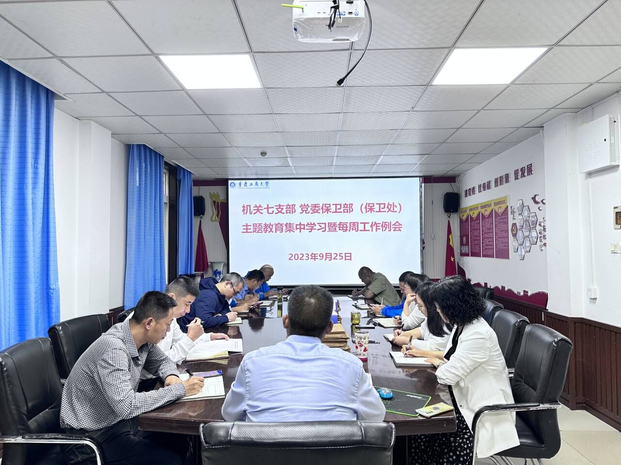 9月25日上午,机关七支部、党委保卫部(保卫处)在支部党员活动室召开了主题教育集中学习会暨每周工作例会。支部党员、保卫干部、安保大队队长和副队长参加了会议,会议由支部书记、党委保卫部部长(保卫处处长)钱忠坤同志主持。