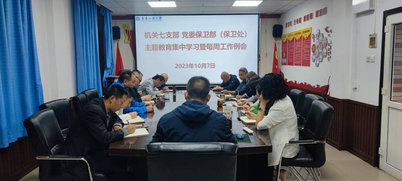 10月7日上午,机关七支部、党委保卫部(保卫处)在支部党员活动室召开了主题教育集中学习会暨每周工作例会。支部党员、保卫干部、安保大队队长和副队长参加了会议,会议由支部书记、党委保卫部部长(保卫处处长)钱忠坤同志主持。