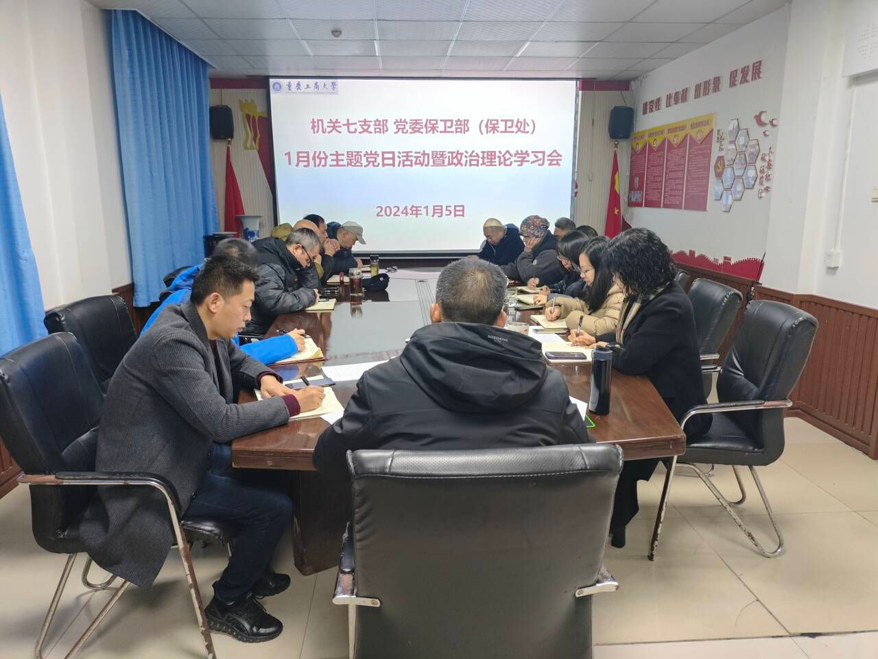 1月5日上午,机关七支部、党委保卫部(保卫处)在党员活动室开展了1月份主题党日活动暨政治理论学习会。活动采取“线下集中学+线上自主学+线上推送学+自己跟进学”的方式进行,活动主题为“接续奋斗 砥砺前行”。支部党员、部门干部参加了活动,支部书记、党委保卫部部长(保卫处处长)钱忠坤同志主持活动。