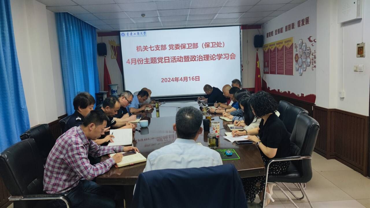 4月16日上午9:00,机关七支部、党委保卫部(保卫处)在支部党员活动室集中开展了4月份主题党日活动暨政治理论学习。活动采取“线下集中学+线上自主学+线上推送学+自己跟进学”的方式进行,活动主题为“坚定理想信念 勇担时代使命”。支部党员、部门干部、安保大队队长副队长参加了活动,支部书记、党委保卫部部长(保卫处处长)钱忠坤同志主持活动。