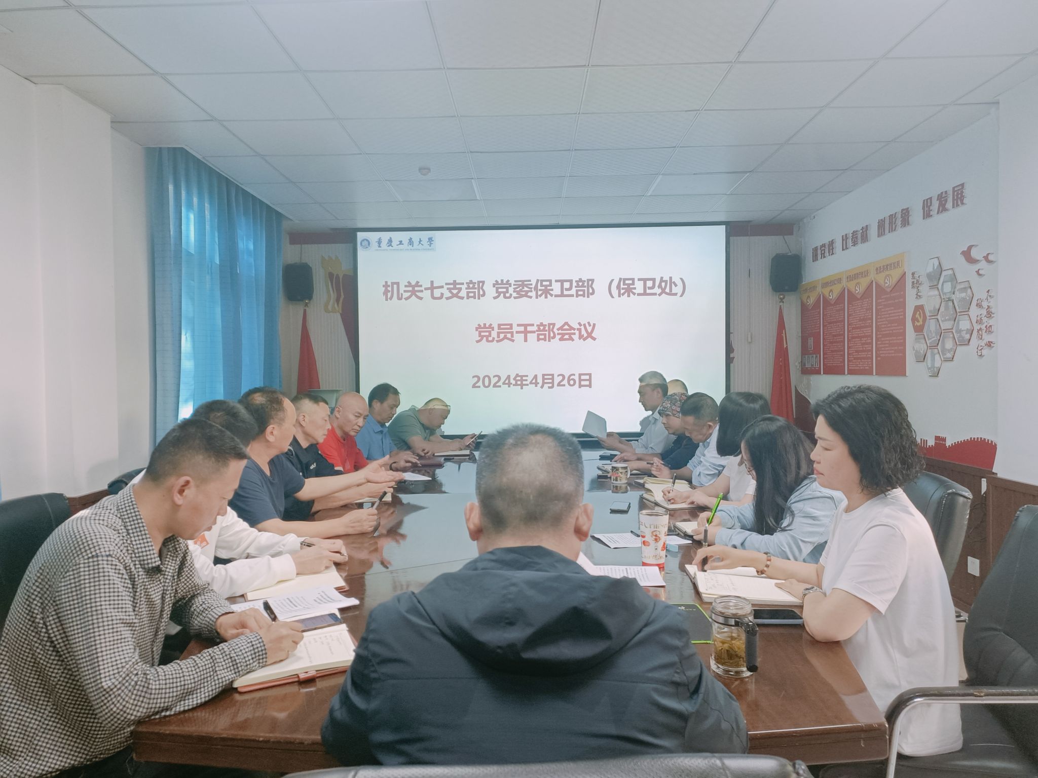 4月26日下午,机关七支部、党委保卫部(保卫处)召开党员干部会议,传达学习习近平总书记在新时代推动西部大开发座谈会和视察重庆的重要讲话重要指示精神。支部党员、部门干部和校园安保服务大队队长副队长参加会议。会议由支部书记、党委保卫部部长(保卫处处长)钱忠坤同志主持。