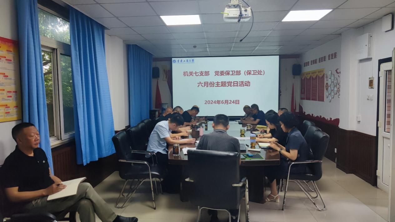6月24日,机关七支部、党委保卫部(保卫处)在支部党员活动室集中开展了6月份主题党日活动。活动采取“线下集中学+线上自主学+线上推送学+自己跟进学”的方式进行,活动主题为“学习领会重要论述 增强遵规守纪自觉”。支部党员、部门干部、安保大队队长副队长参加了活动,支部书记、党委保卫部部长(保卫处处长)沙云同志委托支委委员、党委保卫部副部长(保卫处副处长)王树坤同志主持活动。